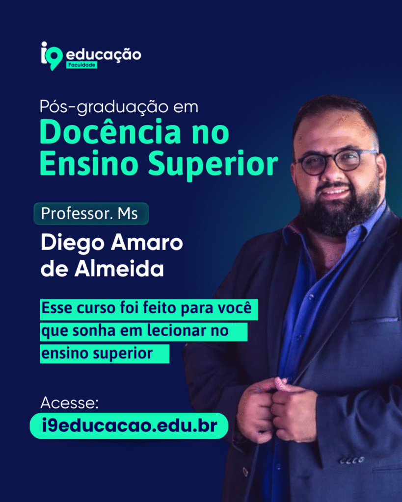 A i9 Educação tem o prazer de anunciar o lançamento de sua inovadora Pós-Graduação em Docência no Ensino Superior. Esta especialização foi cuidadosamente desenvolvida e será coordenada pelo renomado Professor Diego Amaro, um verdadeiro especialista em práticas pedagógicas e formação docente, garantindo, assim, uma jornada de aprendizado de altíssimo nível.