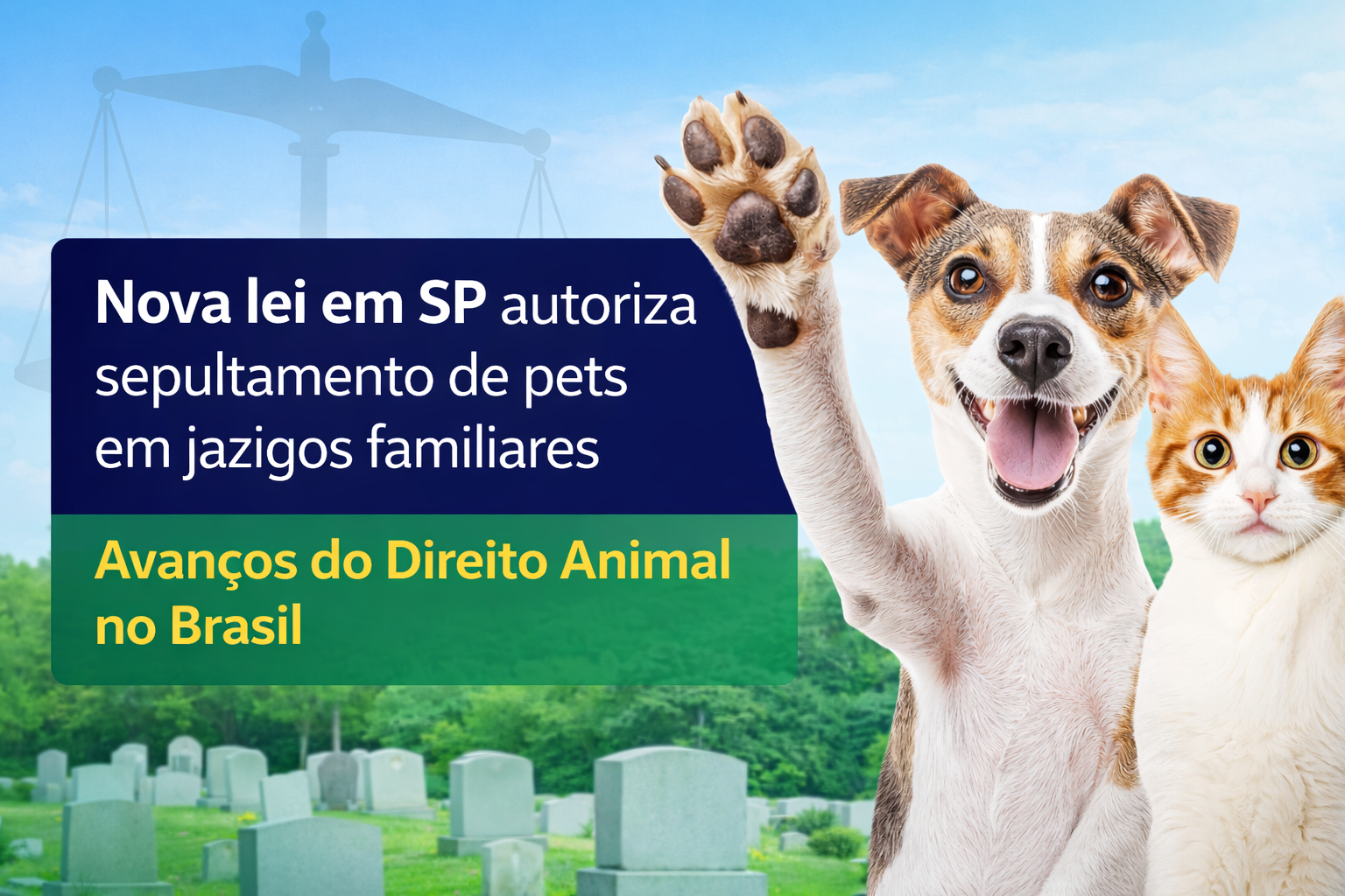 O Direito Animal no Brasil segue em constante evolução. A recente lei sancionada no Estado de São Paulo, que O Direito Animal está em constante evolução no Brasil. Nesse contexto, a recente lei sancionada no Estado de São Paulo autoriza o sepultamento de cães e gatos em jazigos familiares.